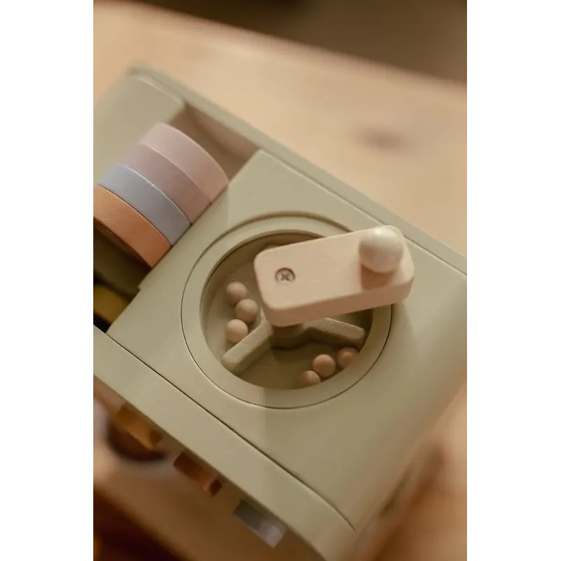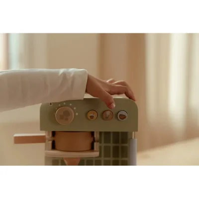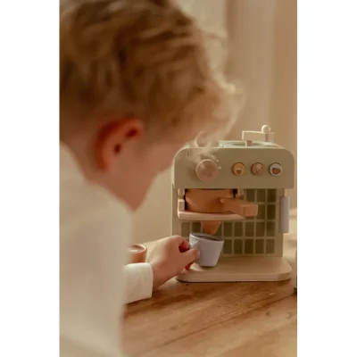 С тази дървена кафемашина малките баристи могат сами да смилат зърна, да поставят кафени капсули и да разбъркват напитката си с лъжица. Комплектът включва две чаши, две лъжици, кана за мляко, картонени кутии за мляко и дори шаблони за капучино за истинско кафе изживяване. На гърба на машината има весели илюстрации. Какво ще бъде днес: кафе или чай?