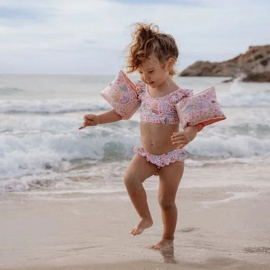Подкрепете първото плуване на вашето дете с тези супер сладки плувки за ръце Little Dutch. С розов дизайн на Dreamy Mermaid, всяка от надуваемите плувки има два въздушни отвори за надуване с клапан.