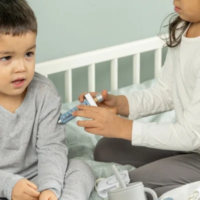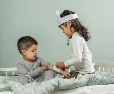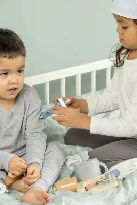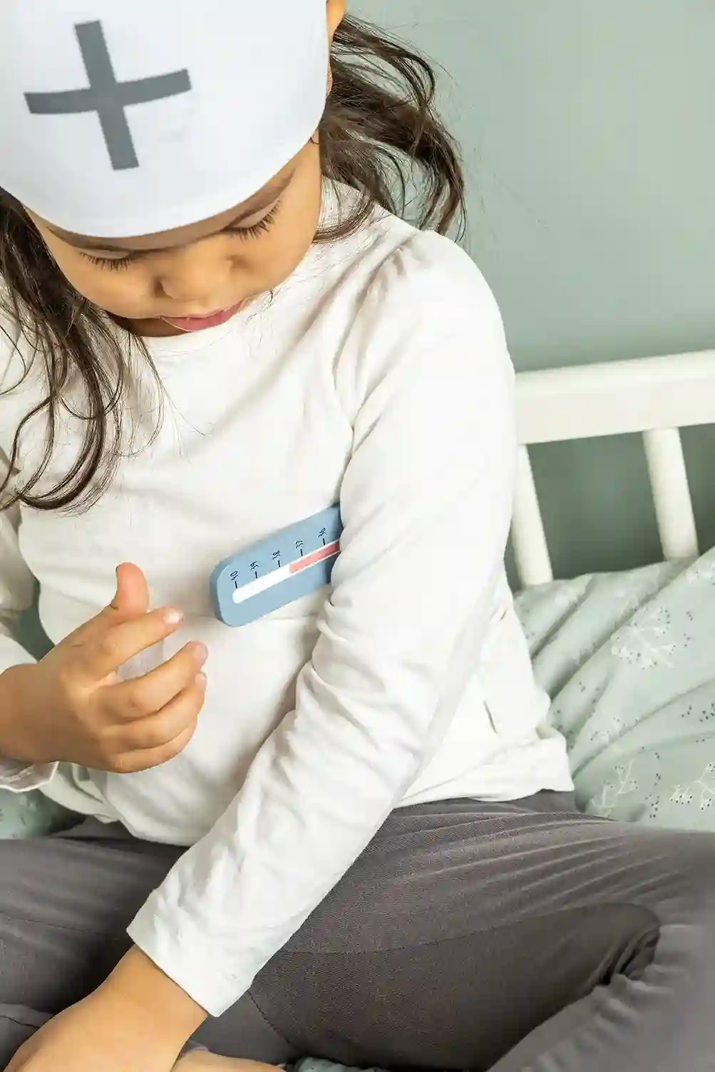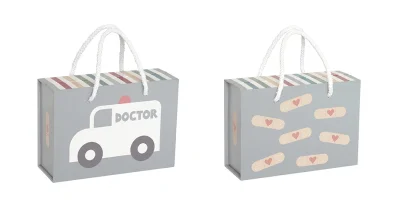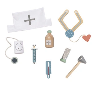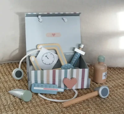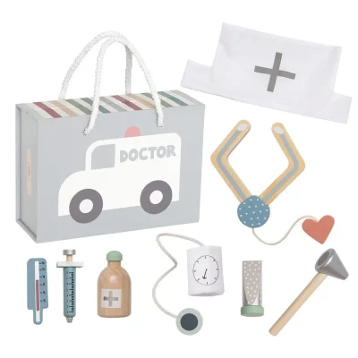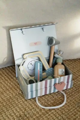 С този лекарски комплект вашето дете може да се забавлява, като си играе на лекар и преглежда пациенти с неговите собствени сладки инструменти.