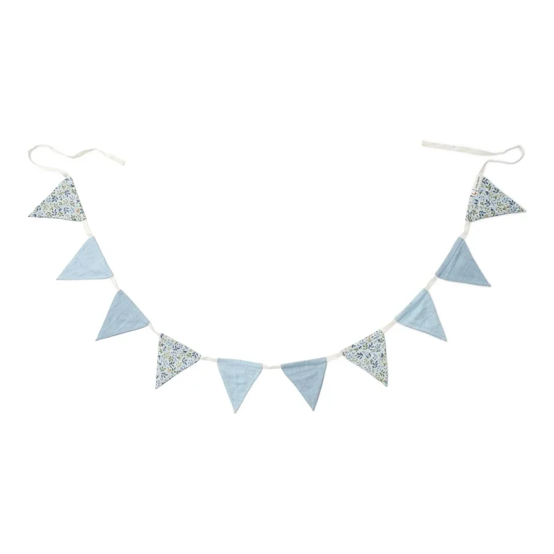 Добавете малко щастие в бебешката стая с този прекрасен гирлянд. Кой казва, че гирляндите са само за партита? Те освежават стаята мигновено. На стената, срещу креватчето, на рафта с книжките или за декорация на кошарката за игра, станете креативни с този текстилен гирлянд в нежните нюанси на сиьото.