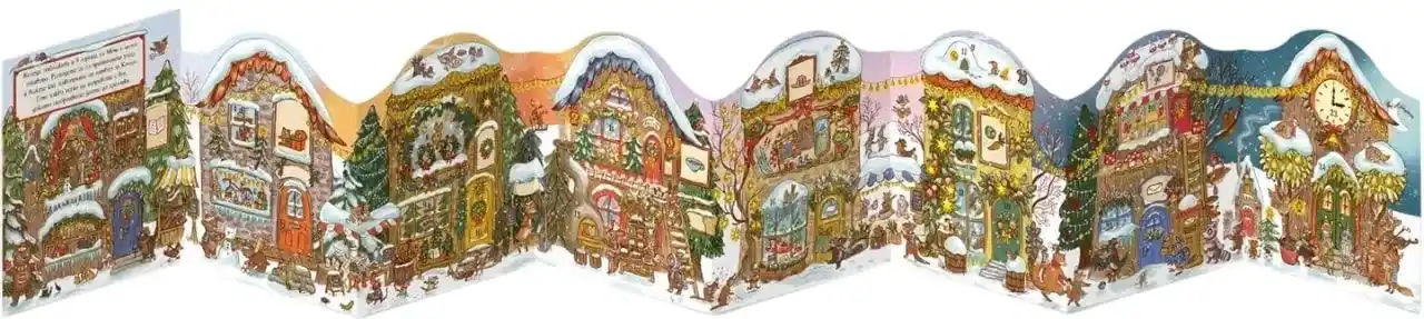 Разходете се по празничната улица в гората на Мечо и вижте как горските животни се готвят за Коледа. Отбройте дните до празника с 24-те капачета, под които ще намерите идеи за забавления, рецепти и съвети за увлекателни коледни занимания. А след като прочетете книгата, може да я разгънете като красив фриз, с който да украсите стаята си!