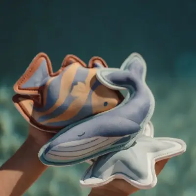 Комплектът Ocean World включва три разпознаваеми и весели фигури – рибка, кит и морска звезда, които насърчават децата да играят активно и да развиват увереност във водата.
