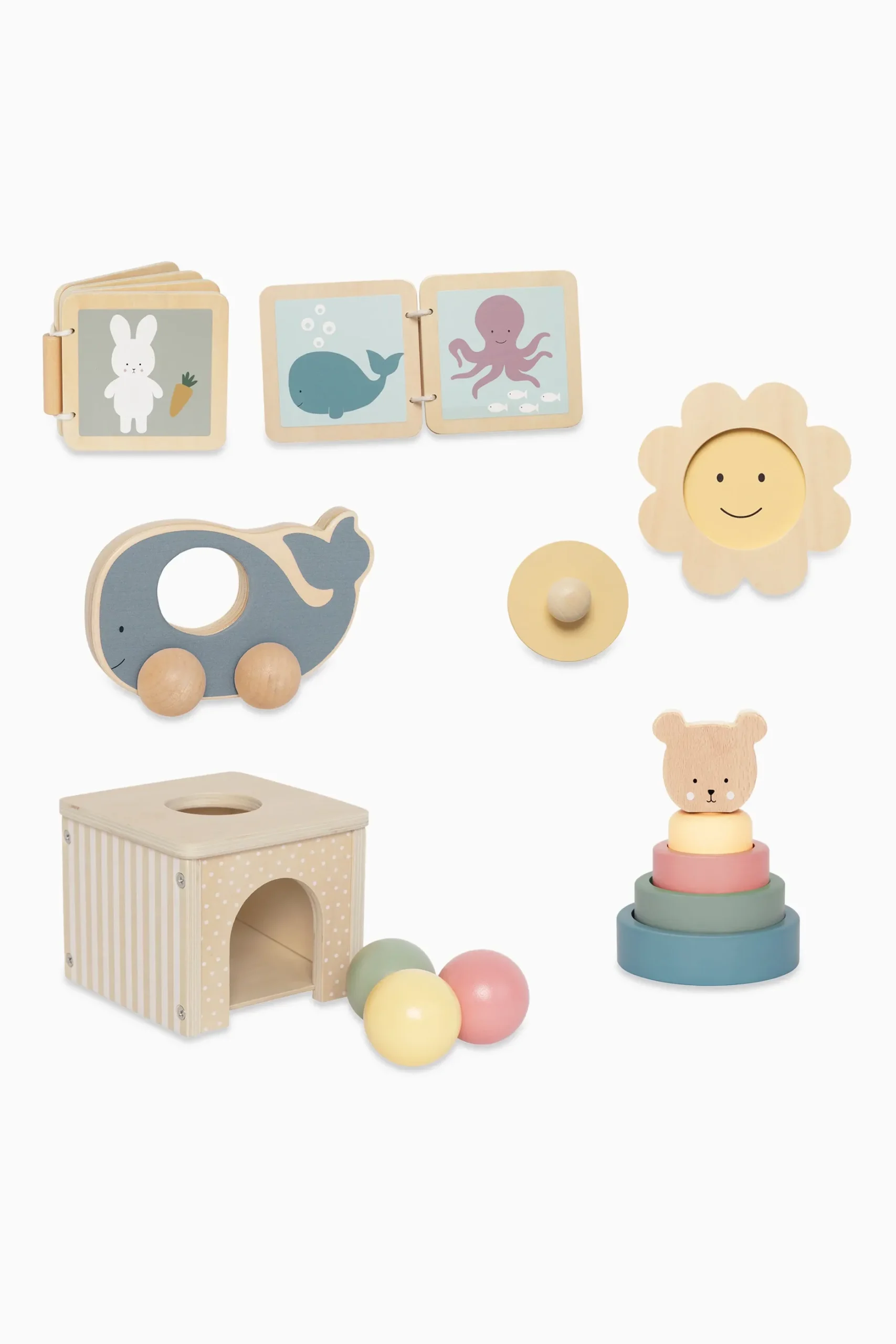 Първата дървена книжка на бебето с осем страници, украсени с животни. Дървената книжка е лесна за използване от бебето, тъй като всяка страница се обръща лесно. Перфектен за малки ръчички.