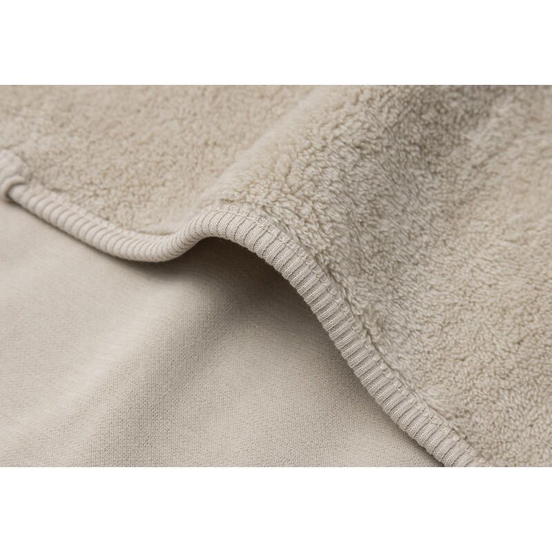Външната страна е изработена от гладък памук джърси, а вътрешната е подплатена с мъхест плат, така че вашето бебе винаги ще се чувства удобно. Одеялото е двустранно и може да се използва от двете страни. Предлага се в цвят слонова кост и овесени ядки – прекрасна основна връхна точка, която е подходяща за всяка детска стая.
