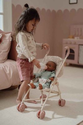 Гледайте как вашето мъниче радостно бута количката за кукли, пеейки приспивни песнички и спирайки, за да нахрани или утеши престореното си бебе със заразително чувство на нежност и въображение, докато усвоява ценни житейски умения чрез магията на играта.