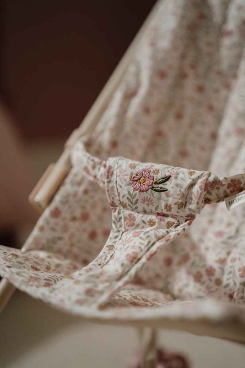 Мястото за сядане е украсено с очарователния дизайн на White Meadows, а подходящата чанта на дръжките осигурява място за съхранение на аксесоари за кукли и необходими неща за разходка. Каишката ще поддържа куклата удобно седнала по време на разходки.