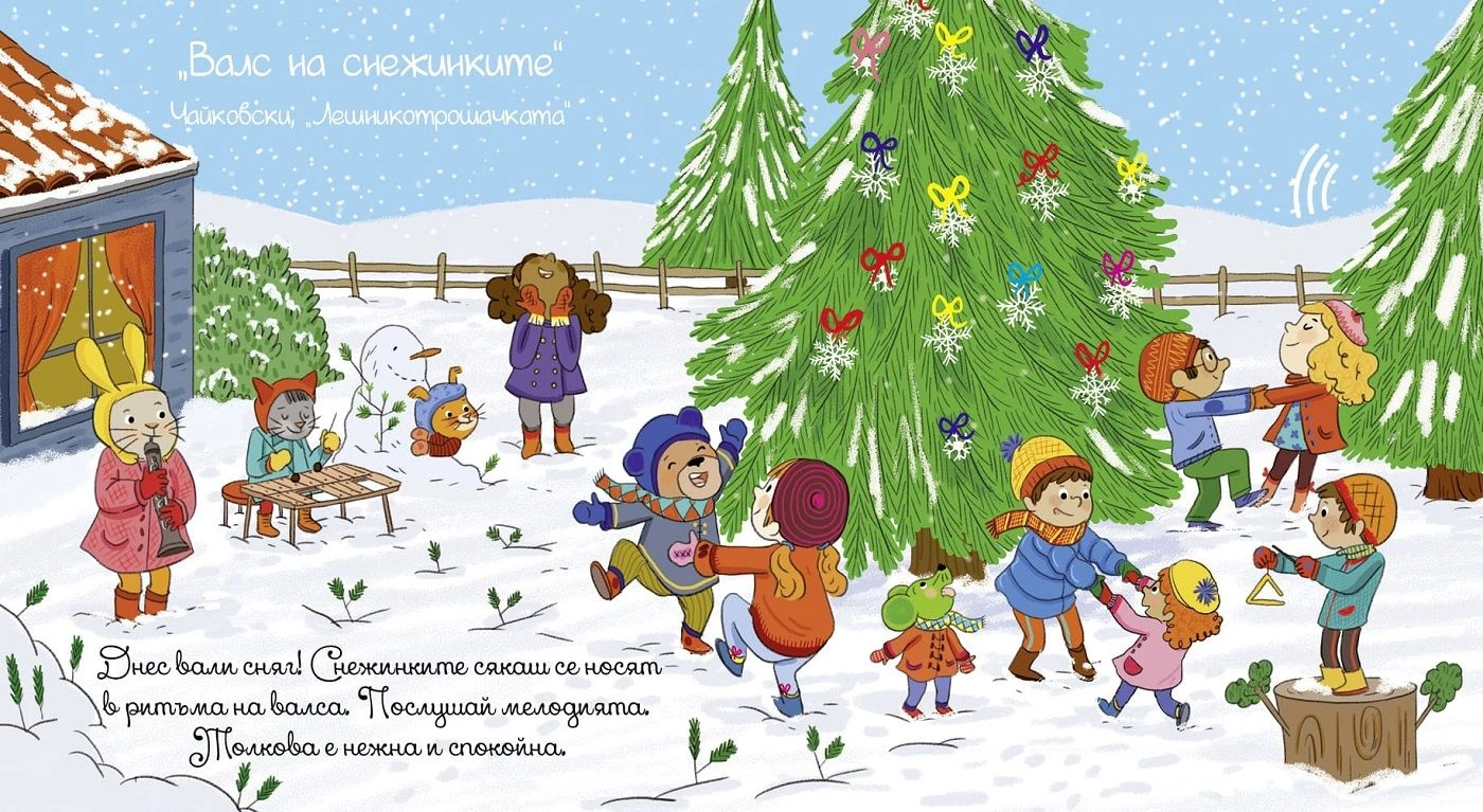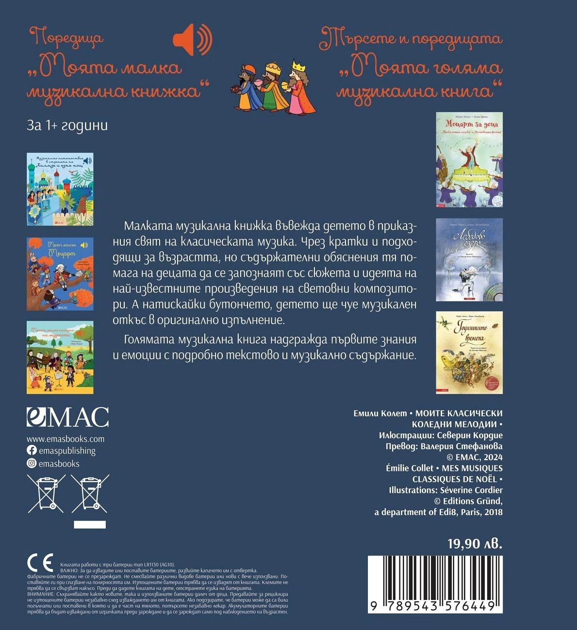Малката музикална книжка въвежда детето в приказния свят на класическата музика. Чрез кратки и подходящи за възрастта, но съдържателни обяснения тя помага на децата да се запознаят със сюжета и идеята на най-известните произведения на световни композитори. А натискайки бутончето, детето ще чуе музикален откъс в оригинално изпълнение.