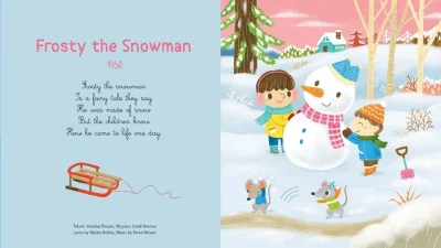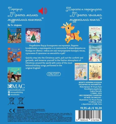 Музикалната книжка с бутончета за най-малките представя кратки откъси от коледни песнички на английски език. Съпроводени са с кратки и емоционални текстчета, които дават първа представа на малките слушатели за света на музиката.