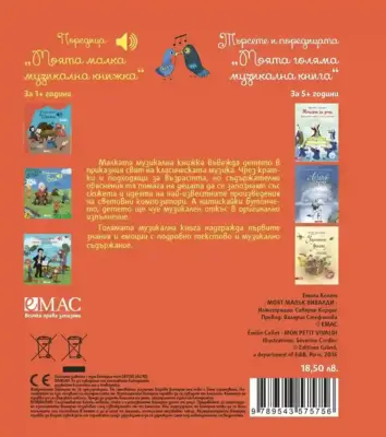 Кратките съдържателни описания обясняват на детето сюжета на произведението. А със сензорните бутончета то може само да пуска и спира мелодиите.