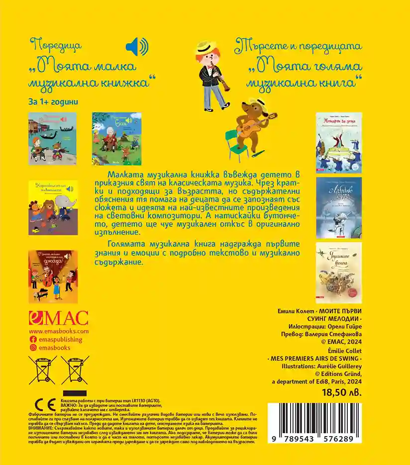 Книжката запознава детето с някои от най-известните суинг произведения. Кратките съдържателни описания обясняват на детето сюжета на произведението. А със сензорните бутончета то може само да пуска и спира мелодиите.
