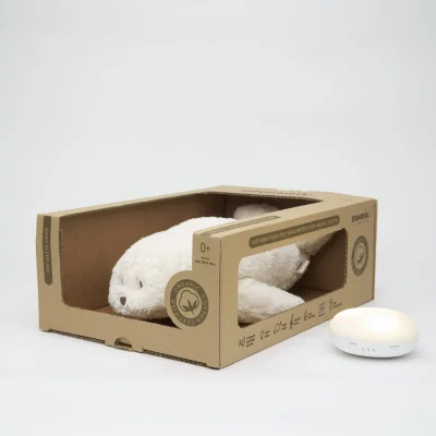 Тюленчето от колекцията MOONIE ORGANIC е професионален помощник за приспиване на бебета, изработен от сертифициран органичен памук. Благодарение на безвредниите, естествени звуци, които възпроизвежда, той помага на бебето или детето да се успокои и да заспи по-бързо. И това не е всичко! MOONIE също е нощна лампа, която може да свети в 7 различни цвята, има сензор за плач, гласов запис и се зарежда чрез USB. Красиво опакован, идеален за подарък!