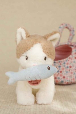 За всички малки любители на котенца! Пухкавото коте Марли идва в красива чантичка с флорални мотиви. Отворът в предната част на чантата позволява главичката на котето да наднича навън. А към комплекта има и плюшена рибка – защото това коте обожава играта и прегръдките!