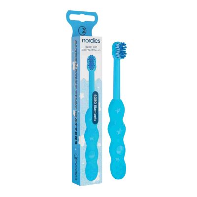 Nordics знаят колко е трудно да изградиш навик за миене на зъбите. Да убедиш децата, че четкането сутрин и вечер е важно и трябва да се прави всеки ден. Затова създадоха четка, която не само е цветна и забавна, но и оставя децата с приятно усещане. Ергономичната дръжка на Премиум бебешките четки Nordics е изработена от хранителен клас силикон. Тази уникална бебешка четка за зъби има 4080 висококачествени ултра меки влакна за най-чувствителните зъбки и венци.