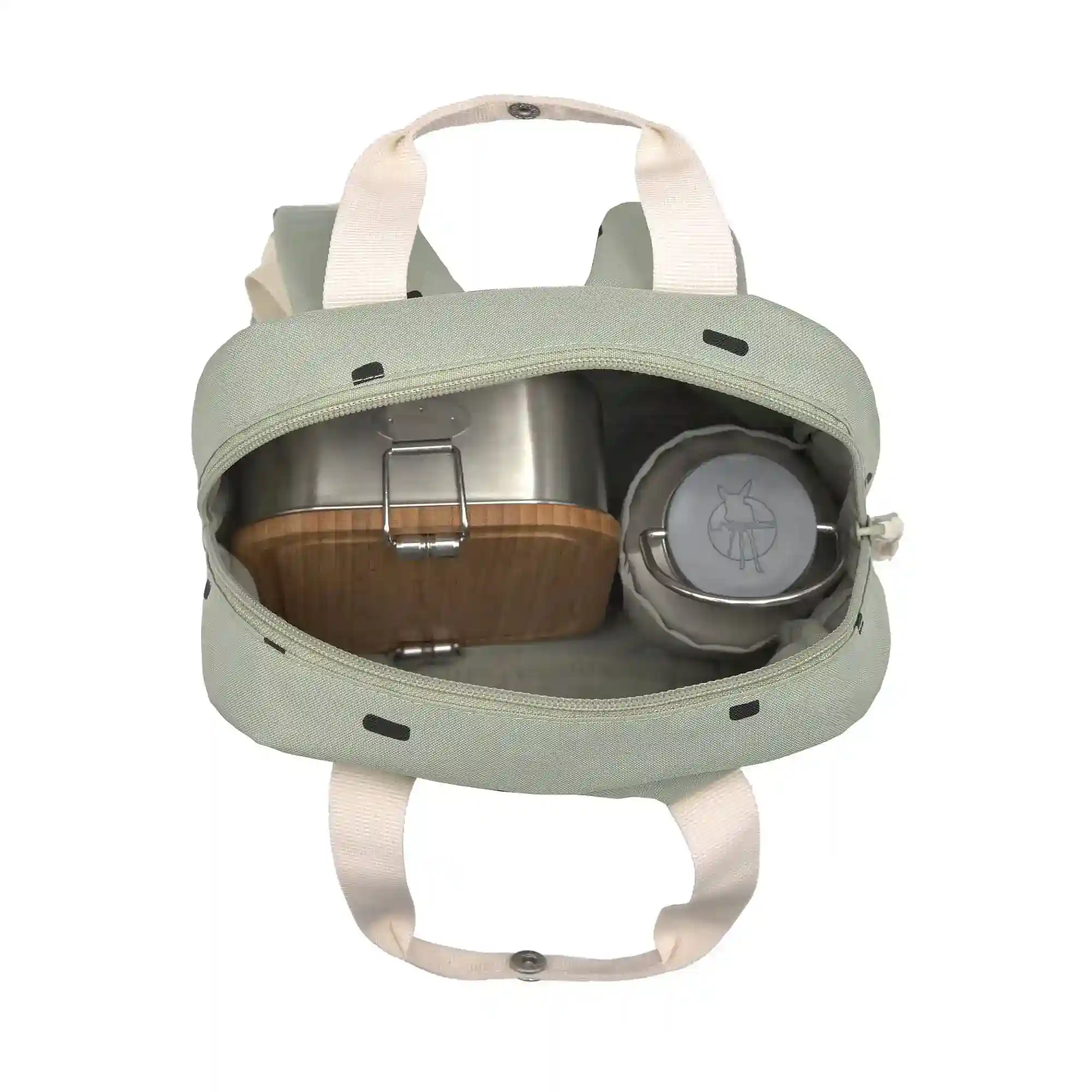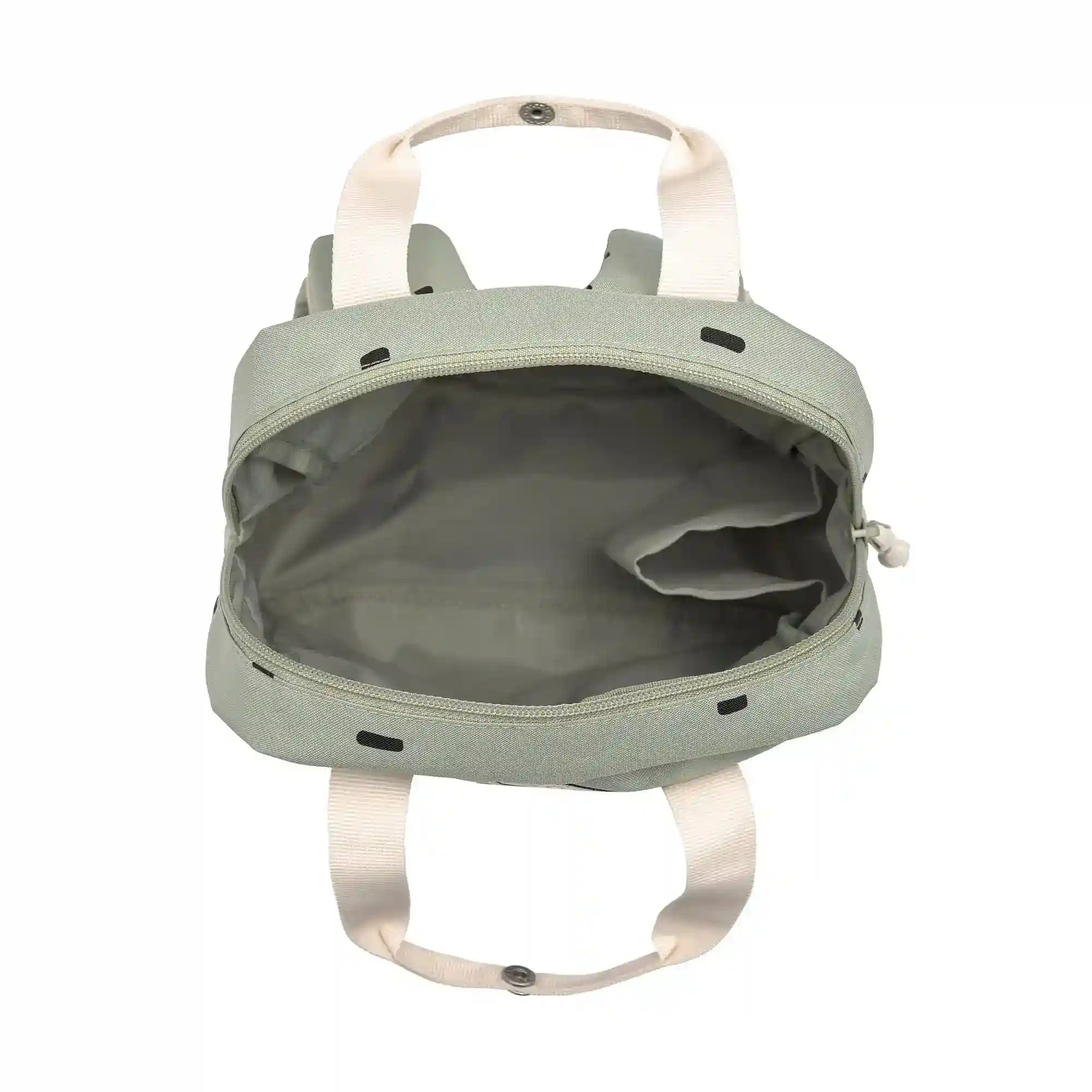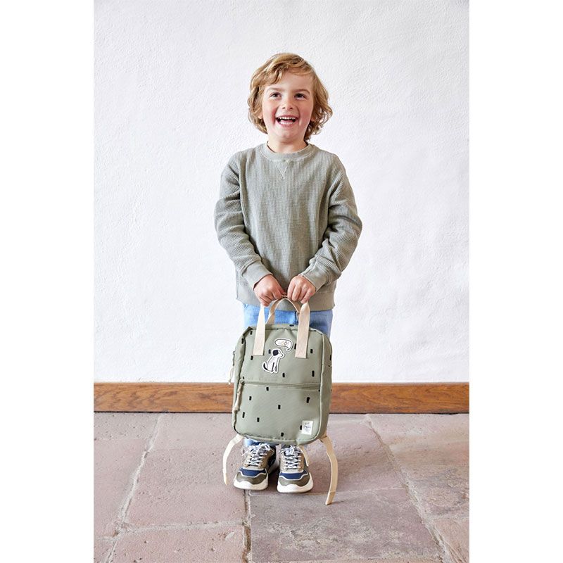Със своите модерни презрамки за носене със закопчалки, квадратната раница може да се носи не само като класическа раница, но и като голяма чанта. Просторното основно отделение на детската раница има място за допълнителни дрехи, обяд, плодове и малки закуски. Може да се съхранява бутилка за пиене в отделението за шише в основното отделение.