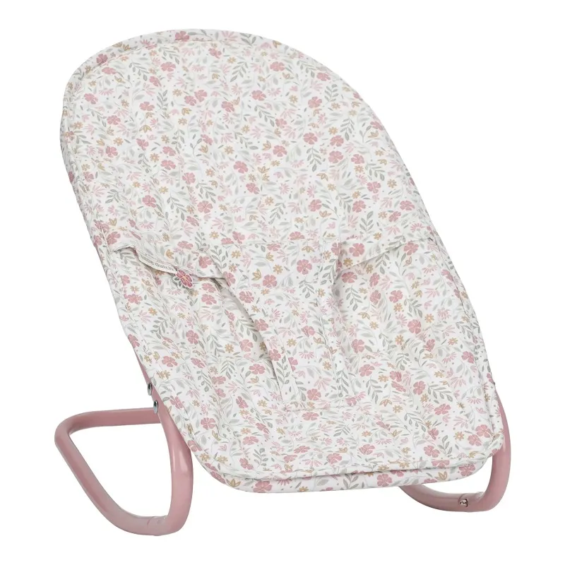 Седалката е с красивия и нежен десен Soft Flowers, който придава стилен и модерен вид на столчето.