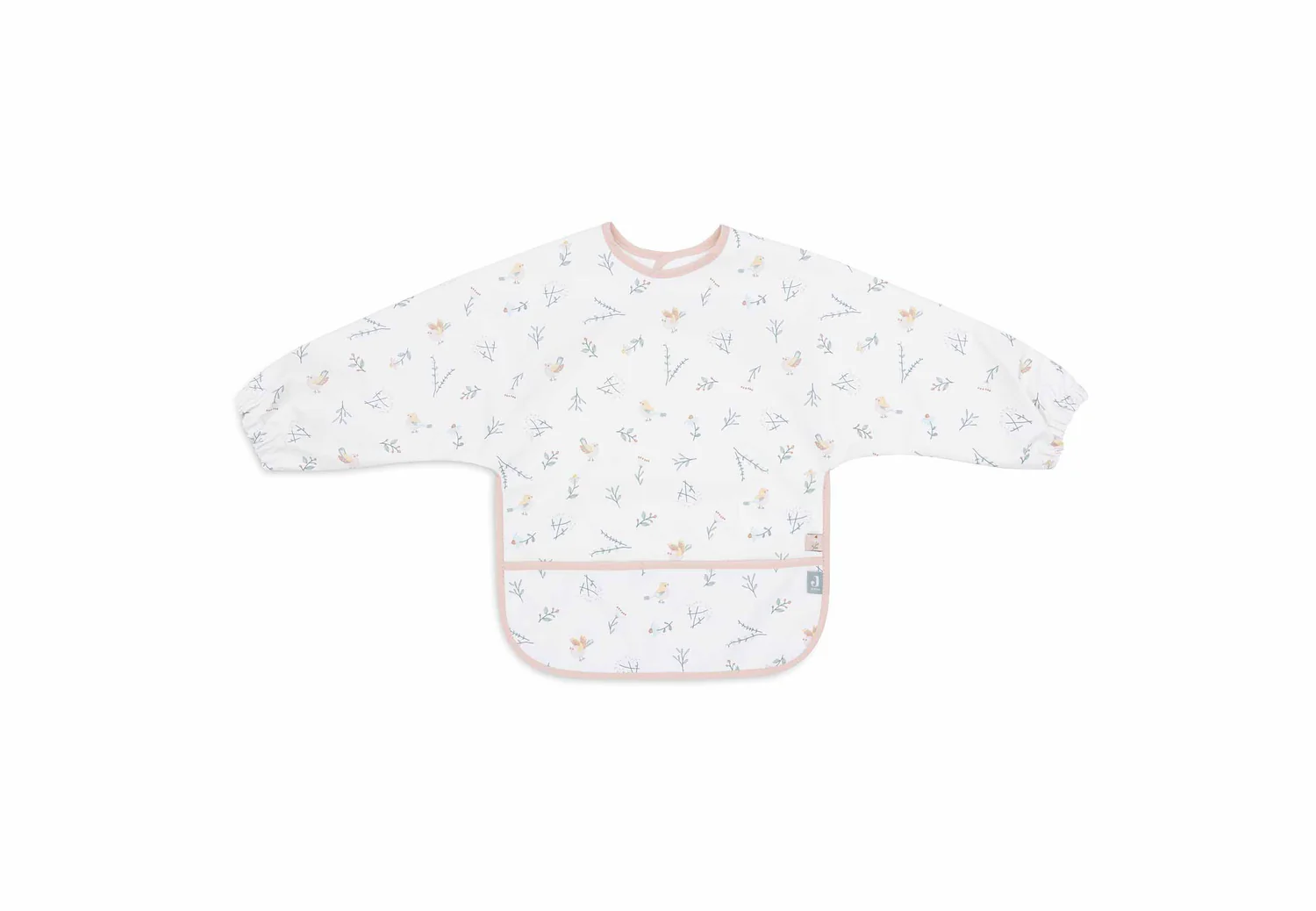 Всички тези дейности могат да причинят много бъркотия и мръсни дрехи. Лигавникът с ръкави поддържа всичко чисто, освен това изглежда много стилен, благодарение на красивия принт. Той се чисти лесно след хранене и има удобен джоб за събиране на остатъци. В допълнение, лигавникът е снабден с удобно велкро-затваряне отзад, така че да остане на място и да не се сваля лесно от вашето мъниче.